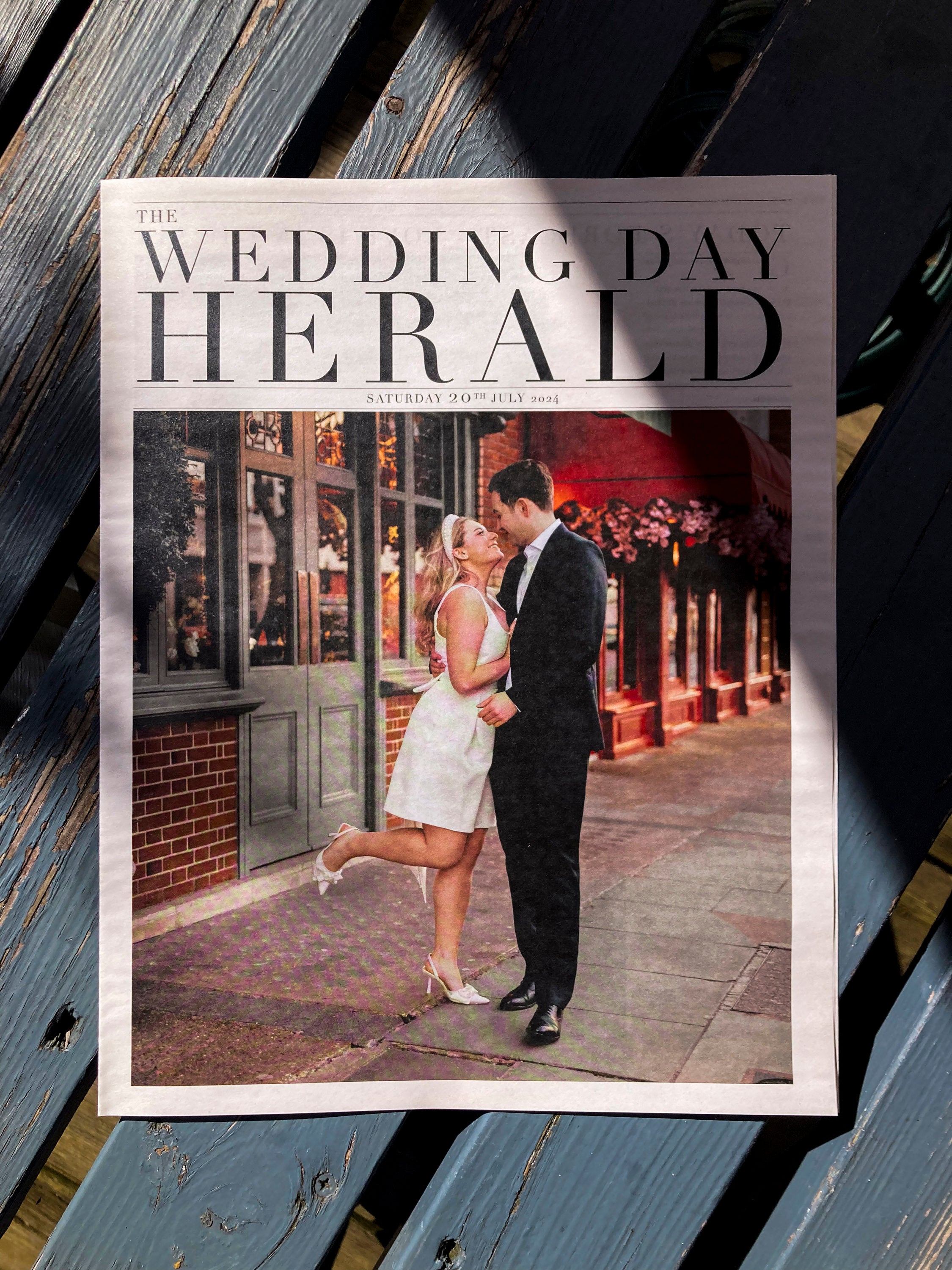 Our beautiful ‘Wedding Day Edition’newspaper is the Swiss Army knife of your wedding day toolkit.